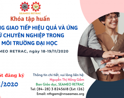 Vào ngày 01-11/12/2020, SEAMEO RETRAC sẽ tổ chức khóa tập huấn quốc tế trực tuyến về...