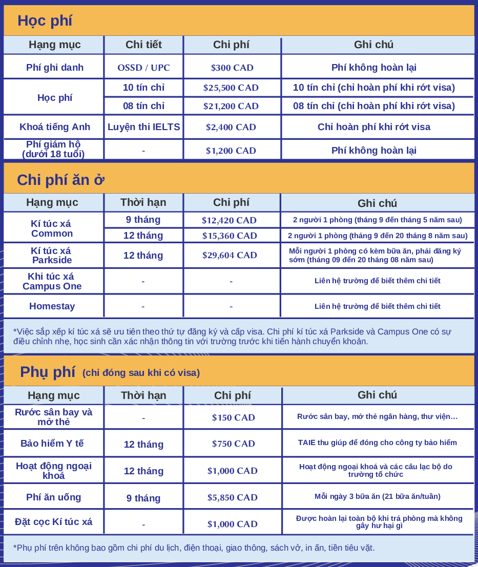 – Miễn phí ghi danh 300 CAD và học bổng lên đến 8,500 CAD cho kỳ nhập học tháng 9/2022