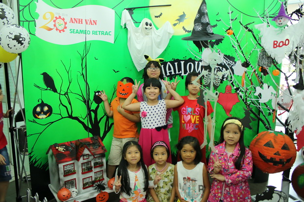Students from all levels individually designed and decorated colorful Halloween witch hats with the help of their teachers. Each of them has such symbolic features of Halloween festival as witches, spiders, black cats, Jack-o-lanterns, and so on. In addition, SEAMEO RETRAC set up a mini quiz for those who are studying at Center. Students were also encouraged to take photos at Halloween Corner, successfully upload on Facebook to win a small gift from Kiddy programs.
