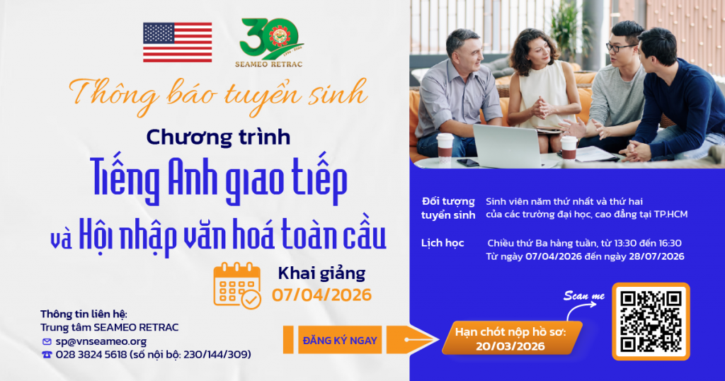 Chương trình “Tiếng Anh giao tiếp và Hội nhập văn hoá toàn cầu” (English Training Course on Global Communication and Cultural Integration) do Trung tâm SEAMEO RETRAC, và Trung tâm Hoa Kỳ tại Thành phố Hồ Chí Minh phối hợp tổ chức.